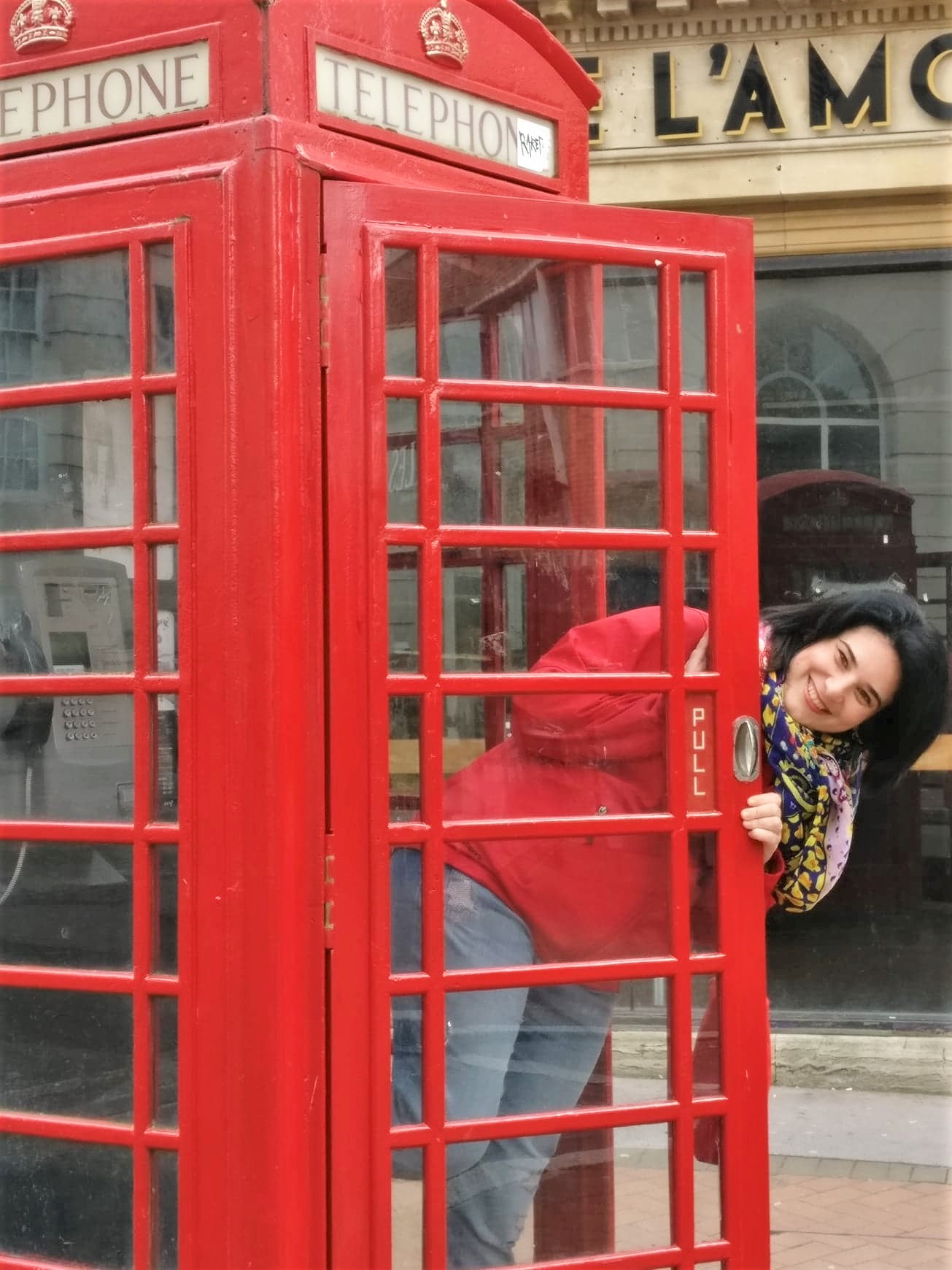 Ne-am plimbat prin tot oraşul. Mi s-a părut ciudat că pe strada pietonală, printre trecători, se plimbau nestingheriţi pescăruşii, întocmai porumbeilor noştri. Am constatat ulterior că sunt mult mai obraznici, dar nu vă povestesc încă episodul. N-am rezistat tentaţiei să păşesc într-o cabină telefonică roşie, ba chiar am fredonat Hello-ul lui Adele.