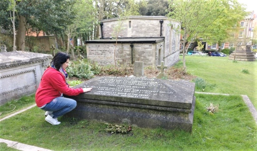 Am făcut un popas la biserica Sfântul Petru, construită în anul secolul XIX, în a cărui curte îşi duce somnul de veci Mary Shelley, cea care ni l-a dat pe goticul Frankenstein, (1797-1851). Tot aici sunt îngopaţi părinţii săi şi inima soţului Percy Bysshe Shelley, nimeni altul decât celebrul filozof şi poet romantic (1792-1822).