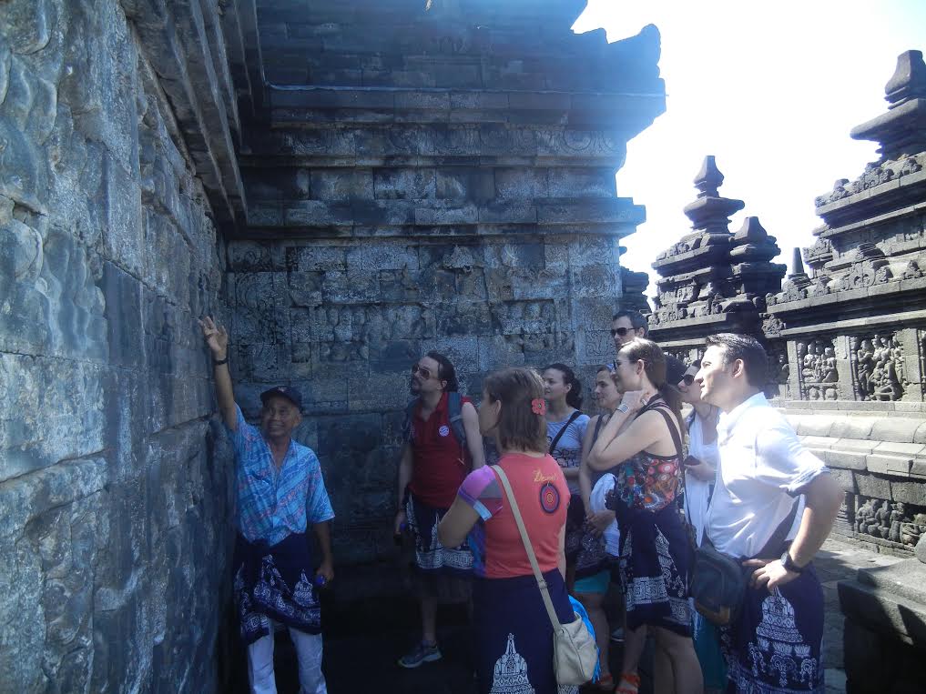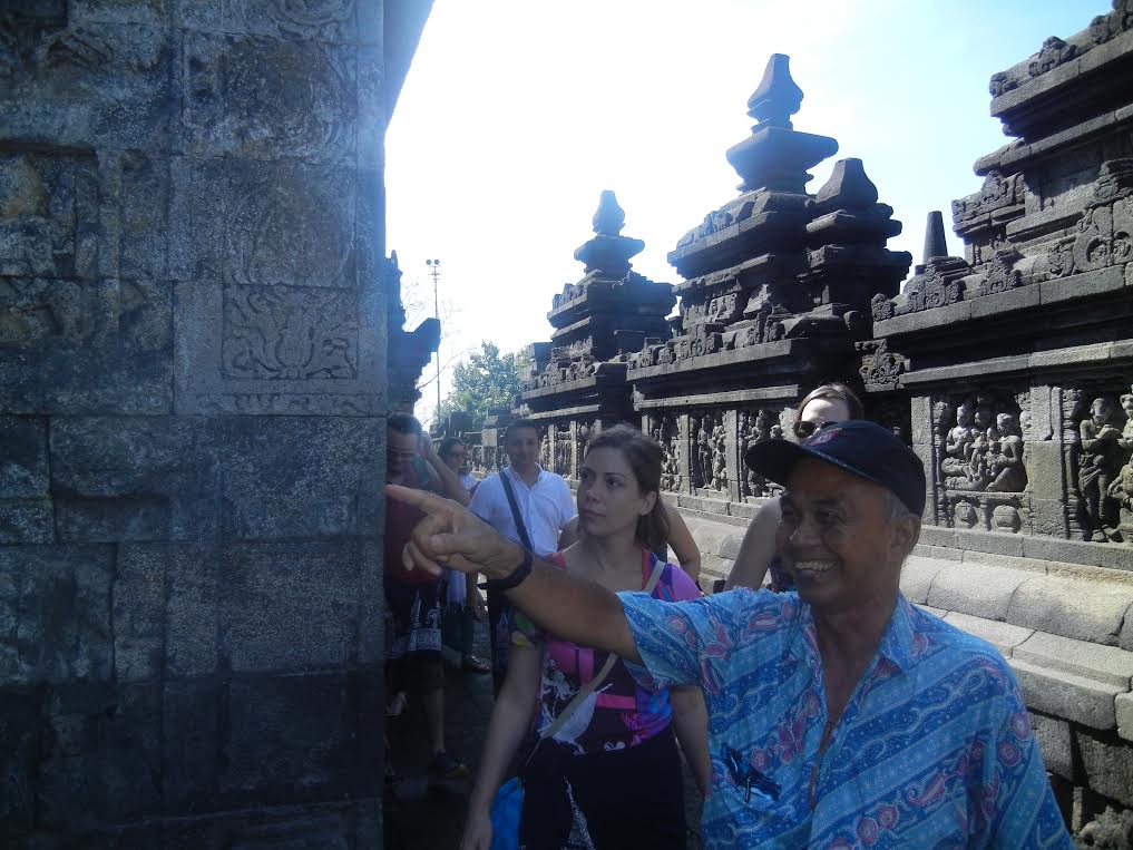 Şi ce ar fi o explorare a magnificului Borobudur fără un ghid pe măsură? Fix ca un indonezian fără zâmbet! Or, cum aşa ceva e imposibil, ursitoarele au avut grija de noi şi ne-au dăruit un mare intelept pişicher pe nume Buddhi, un moşulet cu sufletul pururea tânar care ne-a cucerit după primul zâmbet sincer insotit, inevitabil, de un “binnekha tunggal ika” rostit de doua ori cu o melodicitate magica! Cum dublarea anumitor propoziţii simple sau fraze elaborate a inceput sa ne intrige, am inceput să cercetam oarecum antropologic acest fenomen semantic!