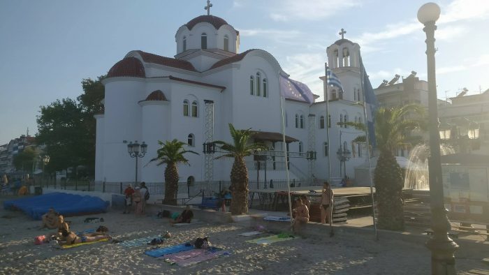 Plaja în Paralia e destul de lată, acoperită cu nisp fin şi se întinde pe vreo trei kilometri. Intrarea în apă e lină. Poţi să înaintezi şi 50 de metri, iar apa să-ţi ajungă la bărbie. E mai uşor să supraveghezi copiii, poate şi din acest motiv vin atâtea familii. Temperatura e perfectă pentru baie. Nu trebuie să te uzi întâi, să faci disconfortul termic mai suportabil. Pur şi simplu te bălăceşti sau pluteşti minute în şir pe o saltea gonflabilă. Noi am primit una în prima zi, pe când ne aşteptam cheia de la cameră, de la nişte tineri care urmau să urce în autocar, spre casă. În ultima zi, am lăsat-o şi noi moştenire unor prieteni care optaseră pentru un sejur de două săptămâni în Paralia. Dacă ar fi să reproşez ceva plajei, ar fi lipsa curăţeniei şi a talazurilor. Egeea e mai blândă decât Marea Neagră, nu prea are valuri. Pe când construiam castele de nisip, mai dădeam de chiştoace îngropate sau alte resturi menajere. Cabinele de schimb de pe plajă adăposteau mirosuri care dovedeau că fuseseră utilizate şi cu alte scopuri decât cele pentru care fuseseră destinate.